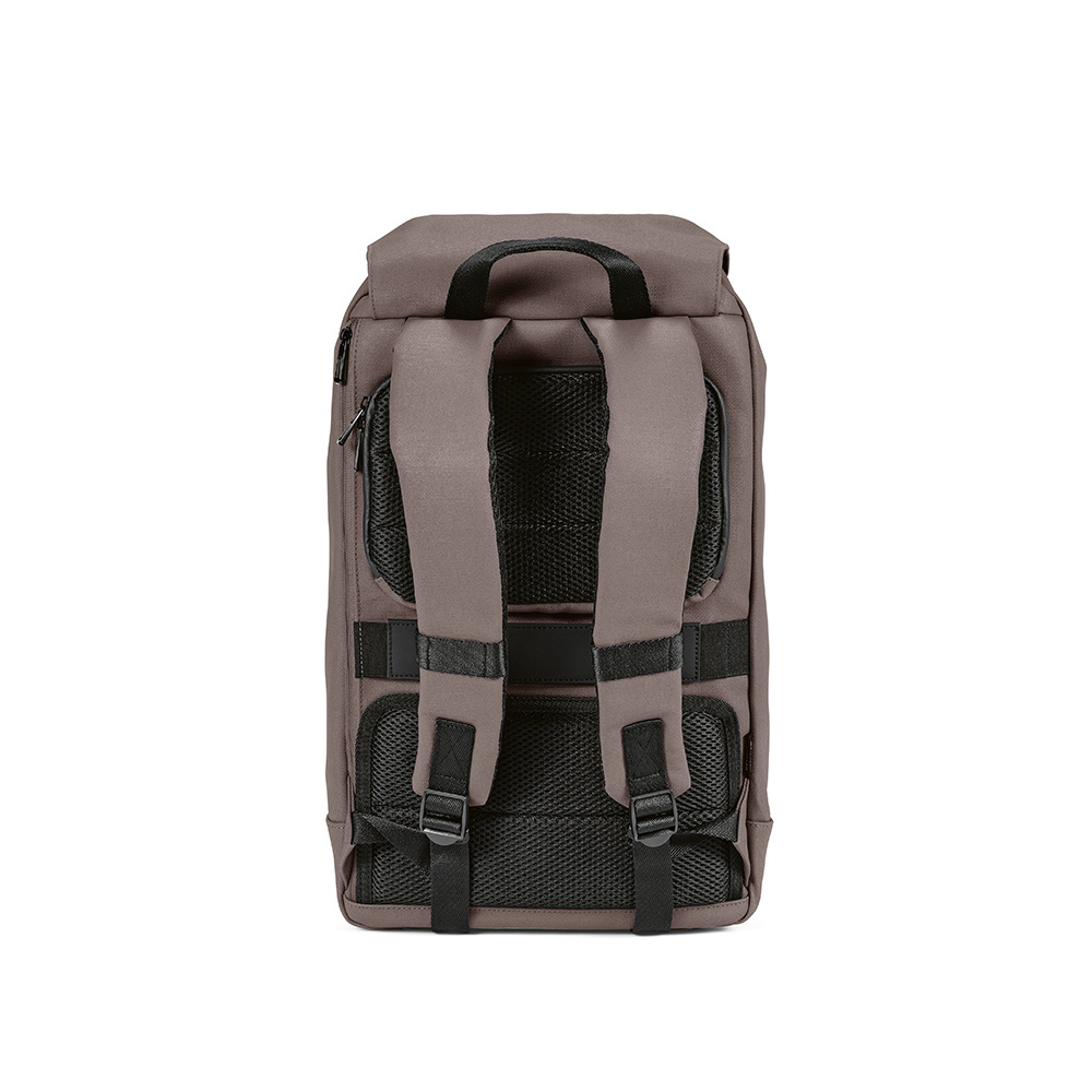 Ten 20-litrowy plecak jest wykonany z bawełnianego płótna z recyklingu o gramaturze 240 g/m2 z powłoką PU, dzięki czemu jest wodoodporny. Ma dużą pojemność, a klamra "G" sprawia, że zamknięcie jest wyjątkowe. Odpinana przednia naszywka umożliwia personalizację. W komplecie mniejsza przednia kieszeń zapinana na zamek.