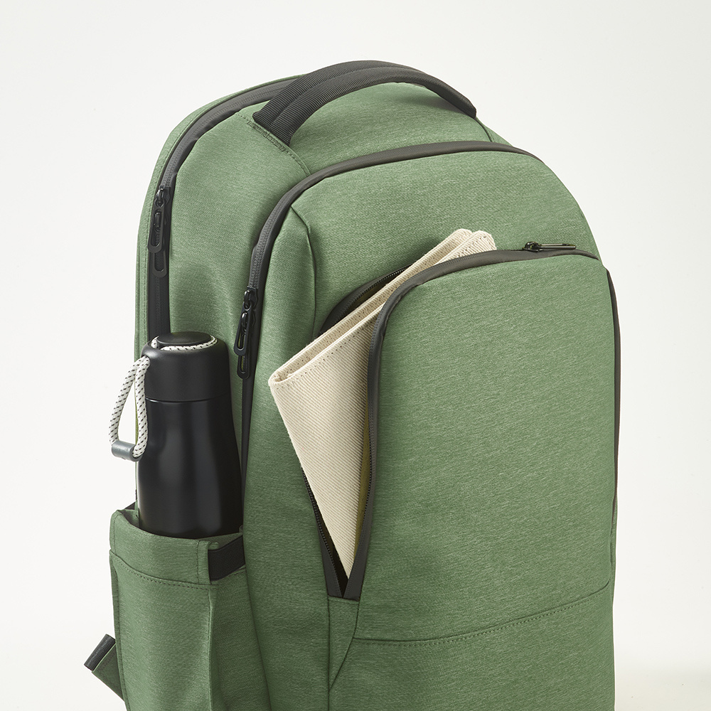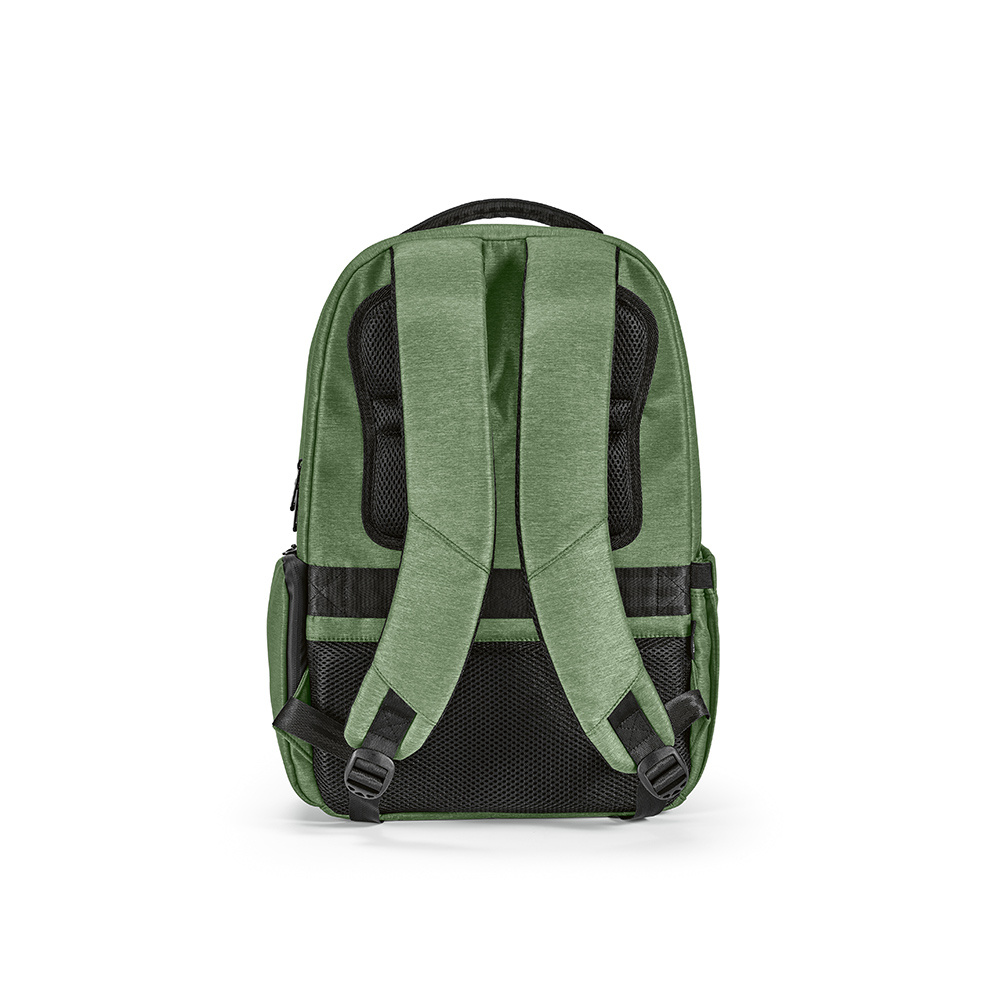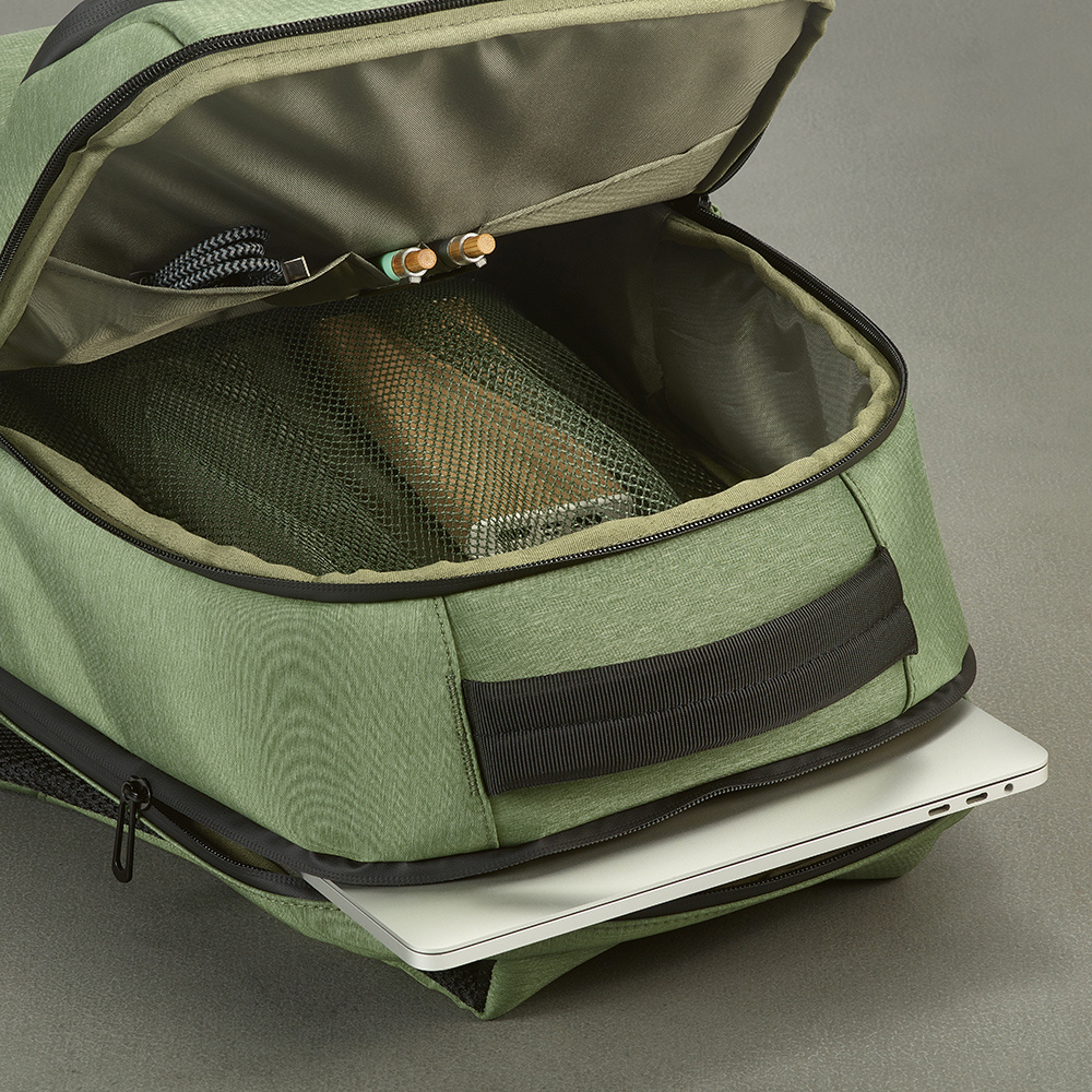 Podkreśl swój styl dzięki naszemu wodoodpornemu dwukolorowemu plecakowi z nylonu pochodzącego z recyklingu. Posiada boczną, wyściełaną przegrodę na laptopa 17", wodoodporne zamki błyskawiczne i przednią kieszeń. Dostarczany w indywidualnej bawełnianej torbie z recyklingu. Dostępny w ciemnych kolorach.