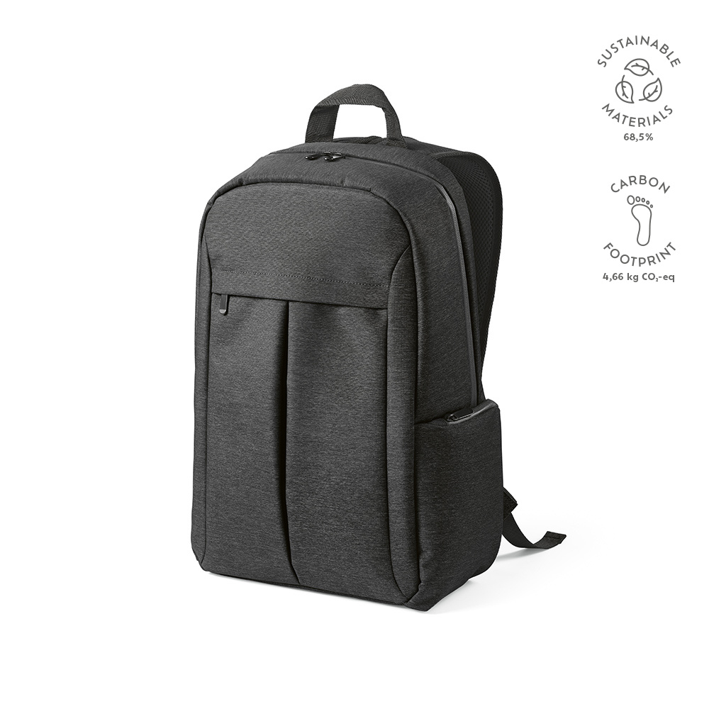 Odkryj funkcjonalny styl z naszym nylonowym plecakiem z recyklingu. Posiada wzmocniony górny uchwyt i wodoodporne zamki błyskawiczne. Elastyczne kieszenie boczne przeznaczone są do przenoszenia butelek, a boczna kieszeń zapinana jest na zamek błyskawiczny. W komplecie indywidualna bawełniana torba z recyklingu.