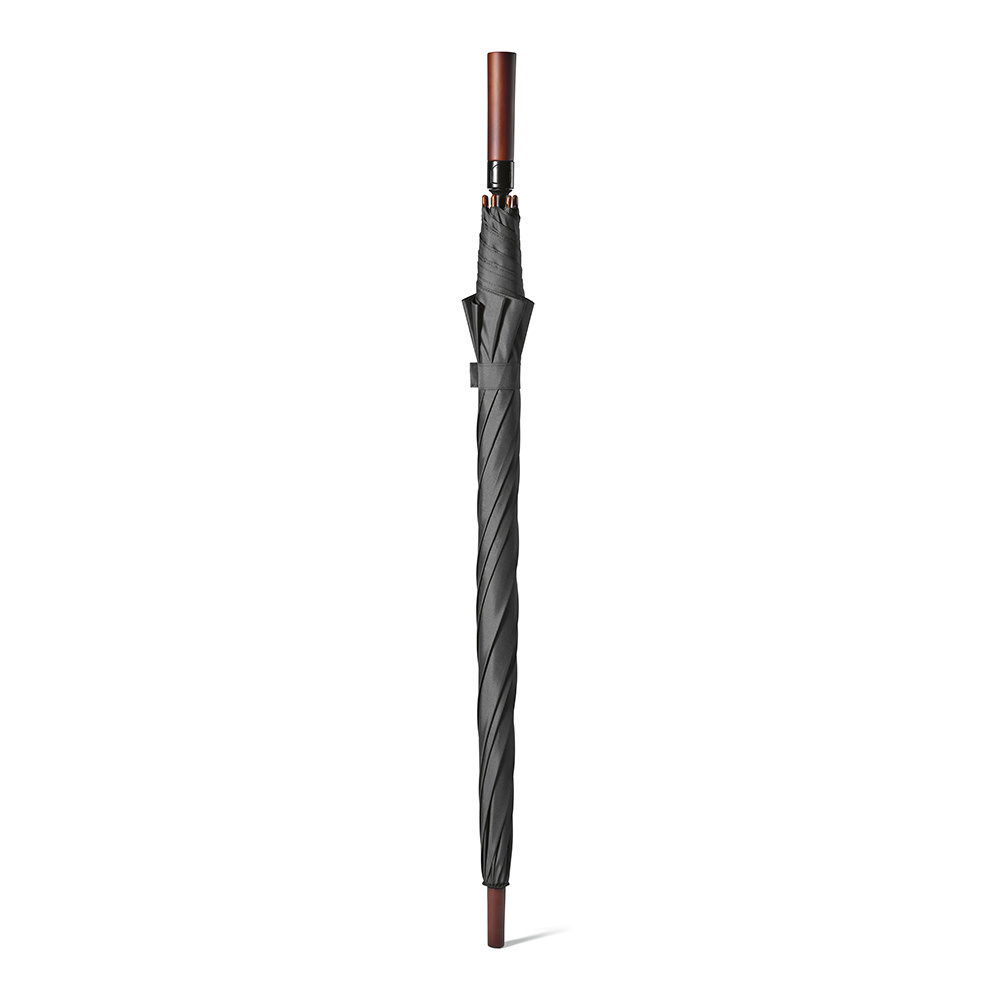 Przygotuj się na deszcz z naszym 32-calowym parasolem golfowym. Z panelami rPET, trzonem z włókna szklanego i żebrami, jest to wiatroodporny parasol z automatycznym otwieraniem. Można go zamknąć za pomocą pasującego kolorystycznie paska na rzep. Wygodny uchwyt z ciemnego drewna i indywidualny pokrowiec rPET.