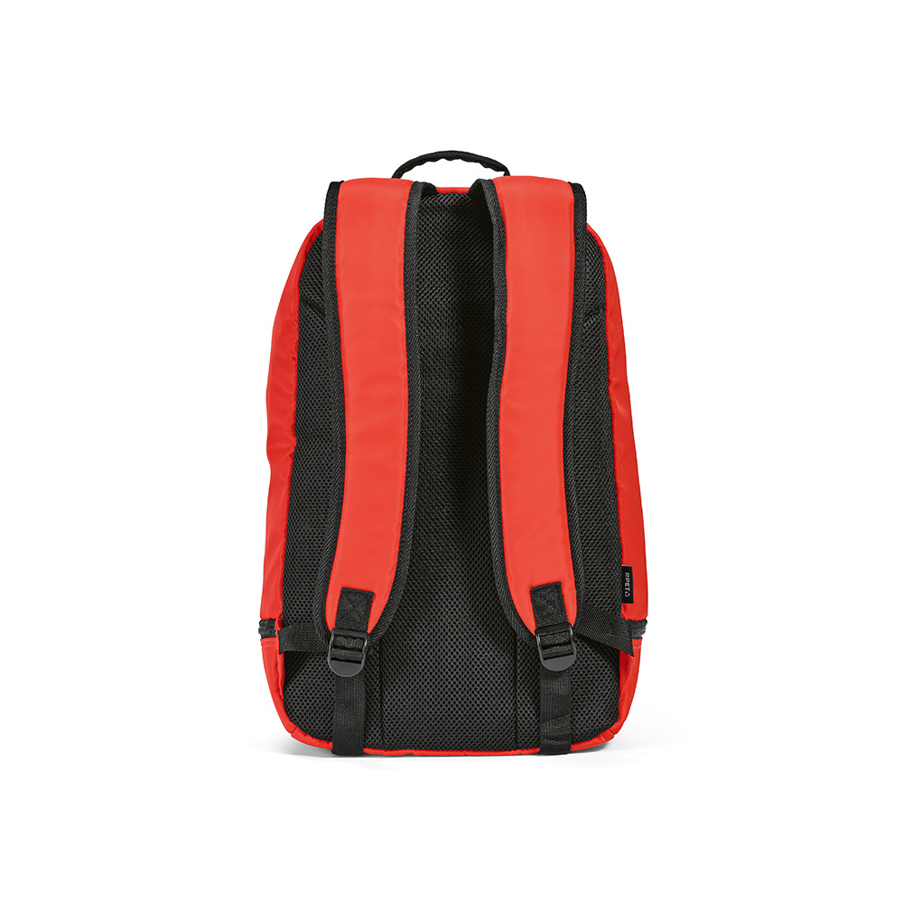 Wykonany z rPET, ten 25-litrowy plecak został zaprojektowany w oparciu o funkcjonalność. Z wyściółką pleców, wzmocnionym górnym uchwytem i dwoma czarnymi odblaskowymi paskami z przodu dla bezpieczeństwa. Na spodzie znajduje się oddzielna kieszeń idealna na buty. Projekt ukierunkowany na funkcjonalność.