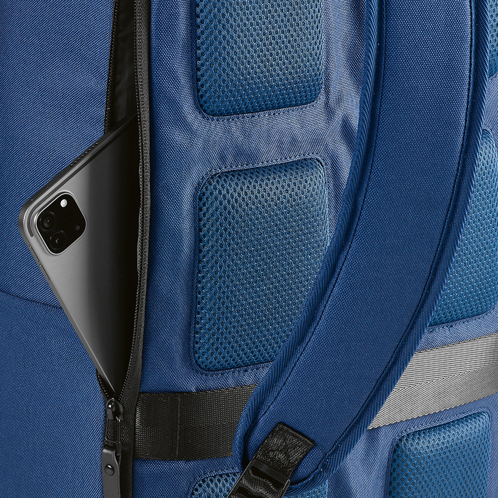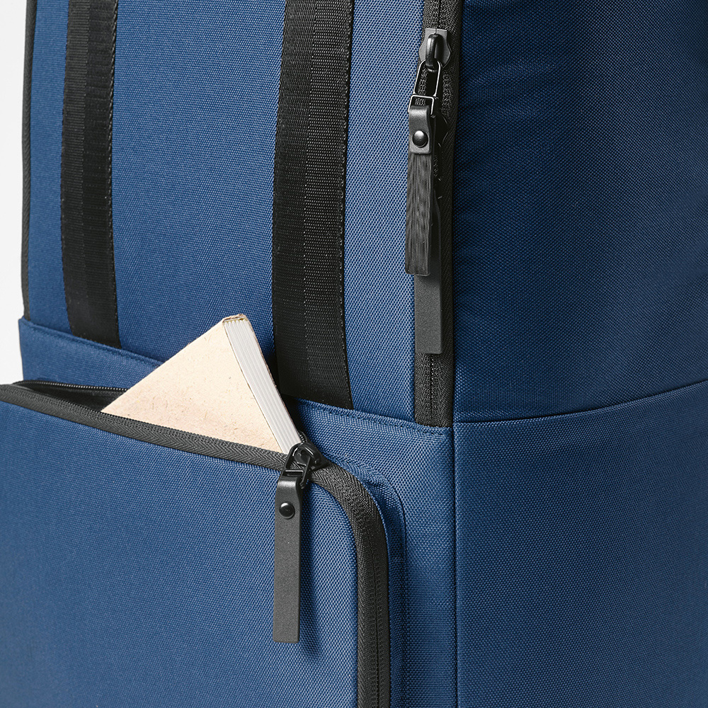 Ten 18-litrowy plecak jest wykonany z poliestru 600D pochodzącego z recyklingu, co zapewnia trwałość i zrównoważony rozwój. Posiada przestronną komorę główną, dedykowane miejsce na laptopa (15.6") i wyściółkę pleców. Posiada również pasek do wózka do użytku podczas podróży.
