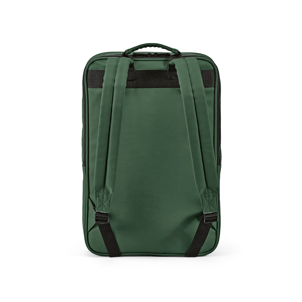 Udoskonal swój styl w zrównoważony sposób dzięki naszemu plecakowi z PU pochodzącego z recyklingu. Przekątny termicznie wszyty zamek błyskawiczny z przodu. Pojedyncza komora z kieszenią na laptopa 17''. Wyściełanie pleców, pasek na kółkach i wzmocniony uchwyt zapewniają wygodę.