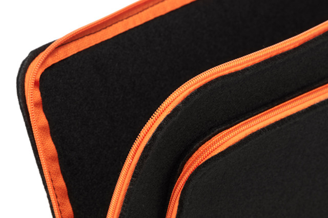 - Zamki błyskawiczne w kontrastowym pomarańczowym kolorze,