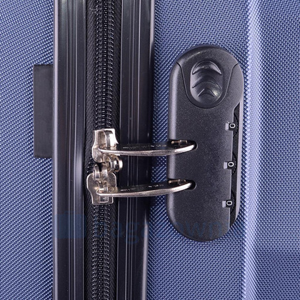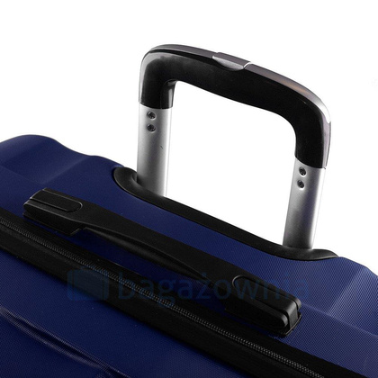 Nowoczesny, lekki model wykonany z bardzo wytrzymałego i odpornego na zarysowanie tworzywa ABS Plus, z dwupoziomową teleskopową rączką. Zewnętrzne, przyjemne w dotyku gumowe uchwyty oraz zamek szyfrowy uniemożliwiający dostanie się do wnętrza osobom niepożądanym. Trwały, duraluminiowy stelaż wbudowany w walizkę. Wyposażony w cztery, obrotowe kauczukowe kółka, które zapewniają stabilność oraz lekkość prowadzenia w dowolnym kierunku. Wnętrze w ciemnym sygnowanym kolorze dzielone zamkiem błyskawicznym na dwie funkcjonalne komory.