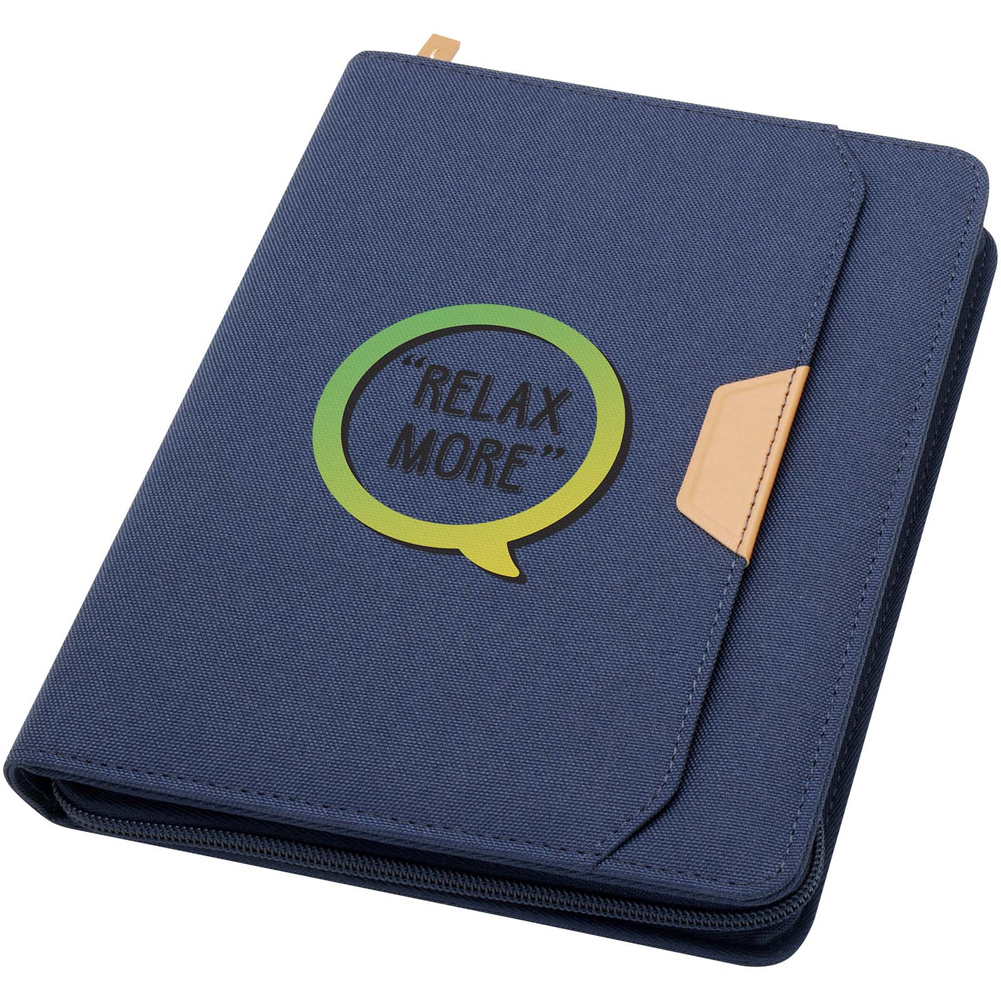 Teczka z notatnikiem do pisania Nomumi w formacie A5 o zaokrąglonych rogach to poręczny i niezbędny w biurze gadżet, wykonany z plastiku pochodzącego z