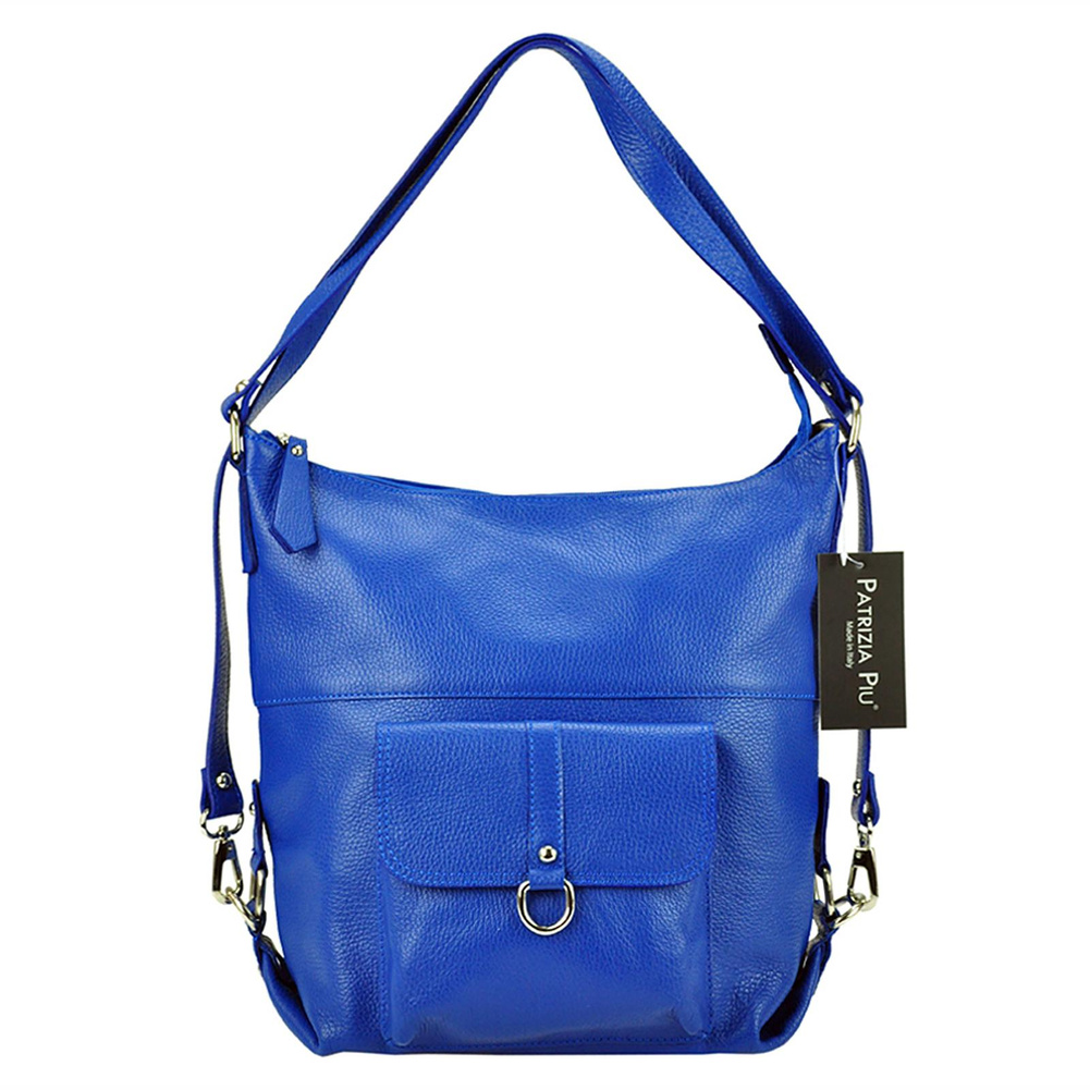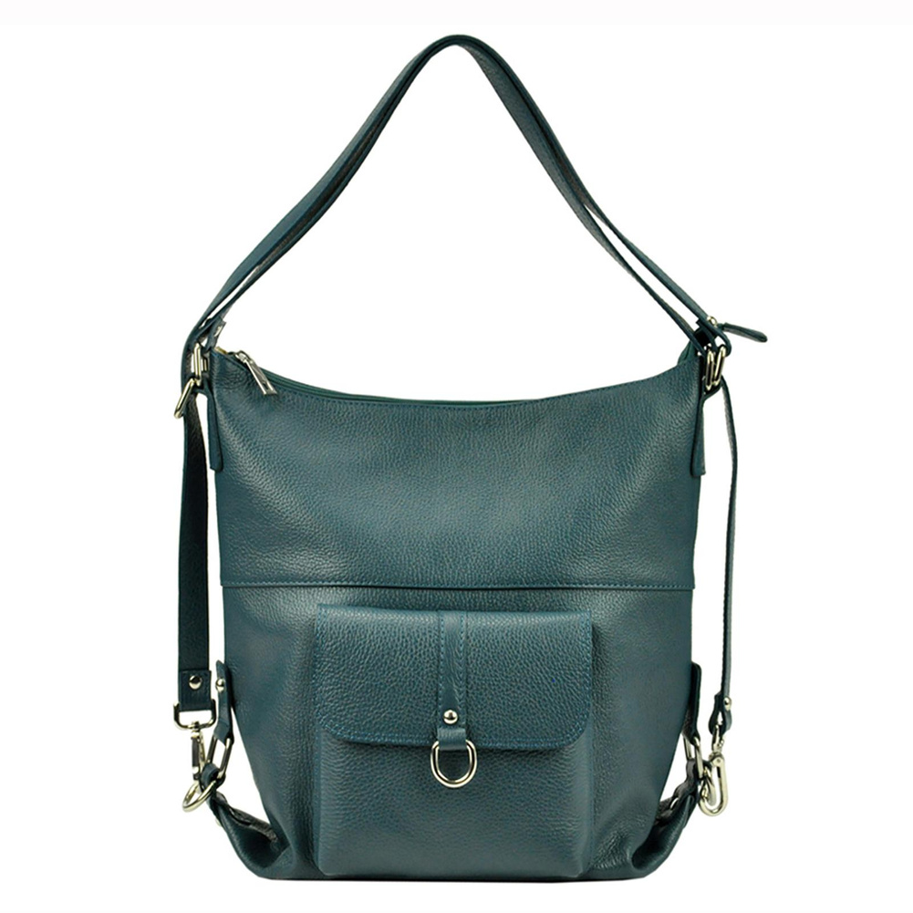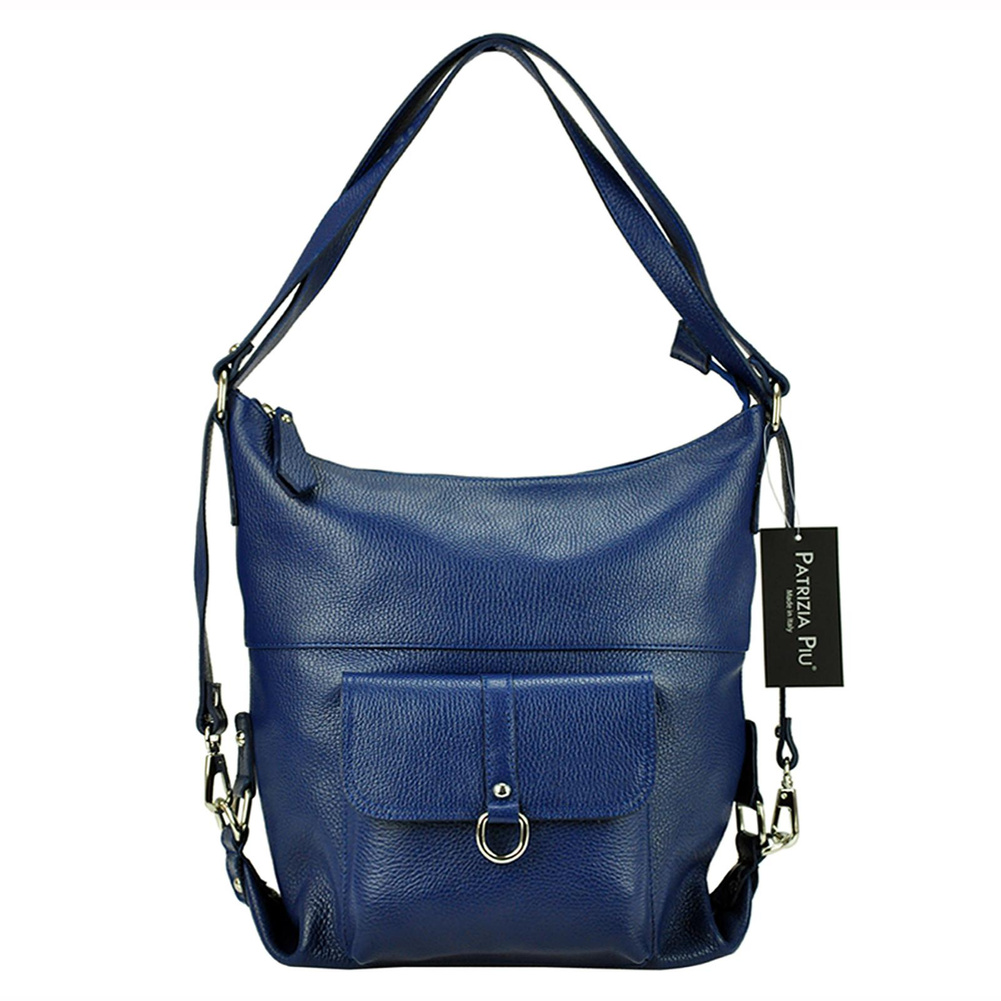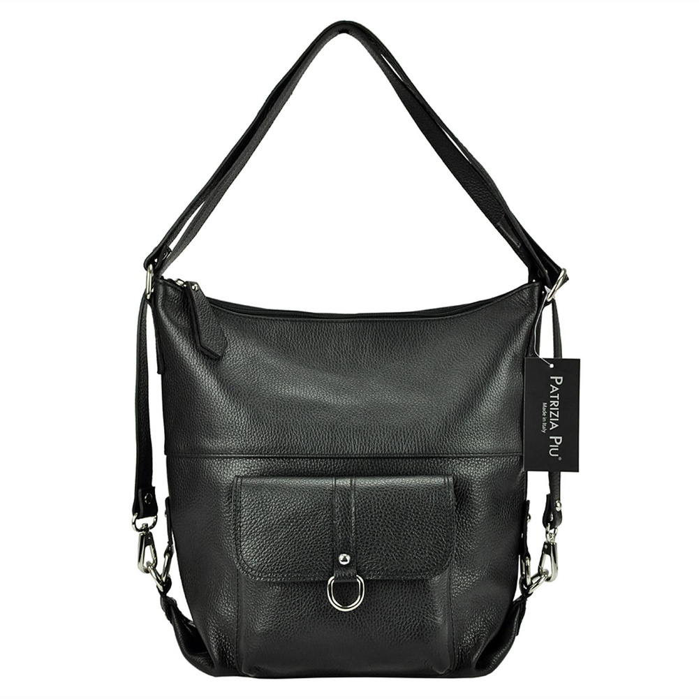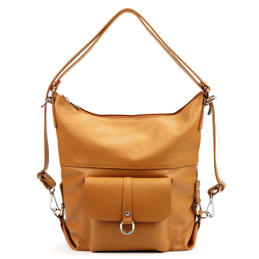 Pojemna, mieszcząca A4. torba z funkcją plecaka. Wykonana jest z najwyższej jakości, włoskiej, naturalnej skóry o wyrazistym "groszkowaniu". Konstrukcja torebki jest jednokomorowa. Wnętrze wykończono trwałą podszewką, w którą wszyto kieszeń-przegrodę, zapinaną na suwak. kieszonkę na telefon i kieszonkę na drobiazgi. Całość zamykana jest solidnym, metalowym zamkiem błyskawicznym. Paski tworzące uchwyt można przepiąć wydłużając je dwukrotnie lub też w ten sposób, by można było nosić torebkę jak plecak.