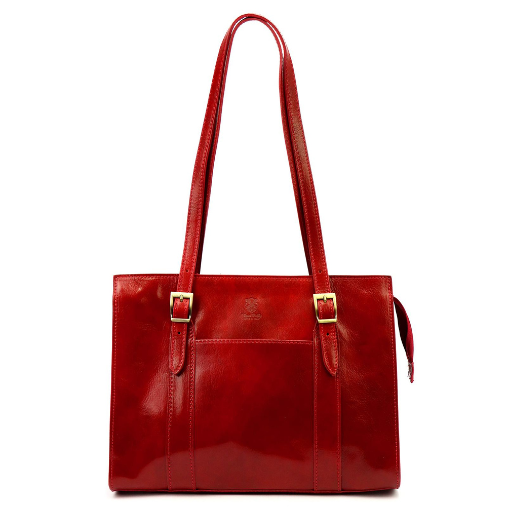 Klasyczna torebka z naturalnej, włoskiej skóry licowej. Skóra wyprawiana i barwiona wyłącznie naturalnymi garbnikami i barwnikami pochodzenia roślinnego i mineralnego. Torebka ma budowę dwukomorową, wykończona została trwałą podszewką. Jedną komorę wyposażono w kieszonkę zapinaną na suwak, a drugą w dwie kieszenie na telefon. Obie komory zamykane są zamkiem błyskawicznym, zaś między komory wszyto podszewkową przegrodę-kieszeń zamykaną na suwak. Całość również zamykana jest mocnym zamkiem błyskawicznym. Przeznaczona jest do noszenia w ręku lub w zgięciu łokcia, ale długie rączki pozwalają nosić ją także na ramieniu.