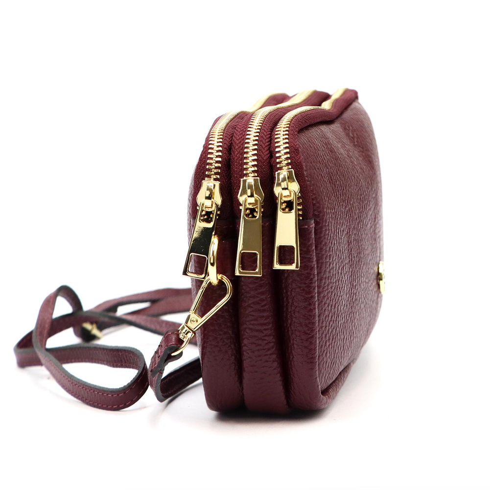 Nieduża torebka-listonoszka o nietypowym kształcie. Wykonana z najwyższej jakości, włoskiej, naturalnej skóry licowej. Skóra wyprawiana i barwiona wyłącznie naturalnymi garbnikami i barwnikami pochodzenia roślinnego i mineralnego. Torebka ma budowę trójkomorową, wykończona jest trwałą podszewką. Każda z komór zamykana jest zamkiem błyskawicznym. Długi pasek pozwala wygodnie nosić ją na ramieniu lub na ukos przez pierś.