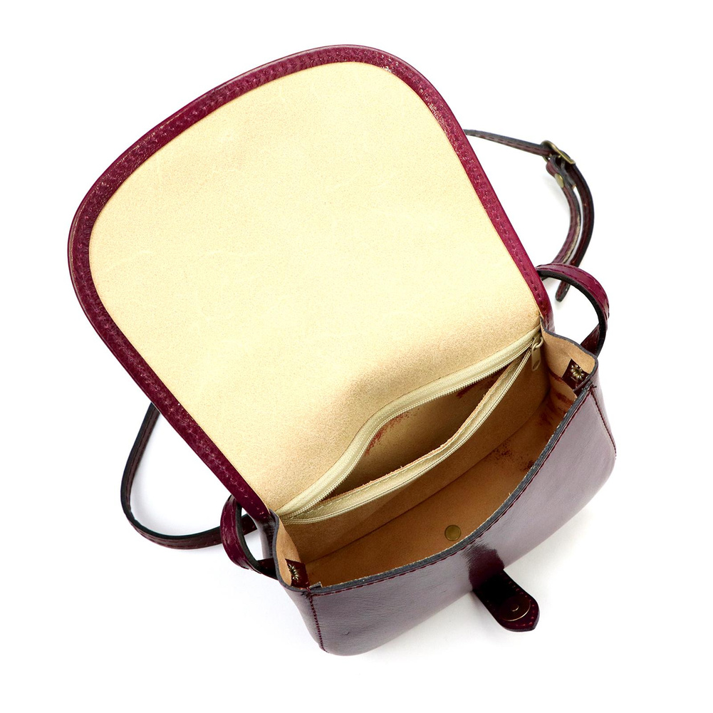 Malutka torebka listonoszka, przeznaczona do noszenia na ramieniu lub na ukos przez pierś. Wykonana jest z najwyższej jakości, włoskiej, naturalnej skóry licowej. Konstrukcja torebki jest jednokomorowa i stanowi usztywniony kuferek. Wewnątrz wszyto kieszeń na drobiazgi, zapinaną na suwak. Całość zamykana jest klapą z zatrzaskiem magnetycznym.