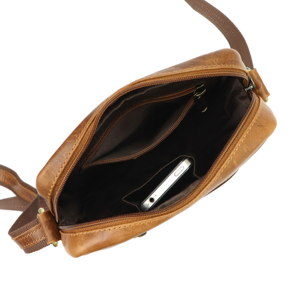 Klasyczna saszetka męska z najwyższej jakości, włoskiej, naturalnej skóry licowej. Skóra wyprawiana i barwiona wyłącznie naturalnymi garbnikami i barwnikami pochodzenia roślinnego i mineralnego. Barwienie skóry wykonywane jest ręcznie w procesie zwanym "tamponato", co nadaje jej charakterystycznego efektu cieniowania. Ma ona konstrukcję jednokomorową. Komora zawiera kieszonkę na telefon i kieszeń zamykaną na suwak. Zapinana jest solidnym zamkiem błyskawicznym. Dodatkowe dwie kieszenie znajdują się na przedniej i tylnej ściance saszetki. Bardzo długi pasek pozwala wygodnie nosić ją na ukos przez pierś.