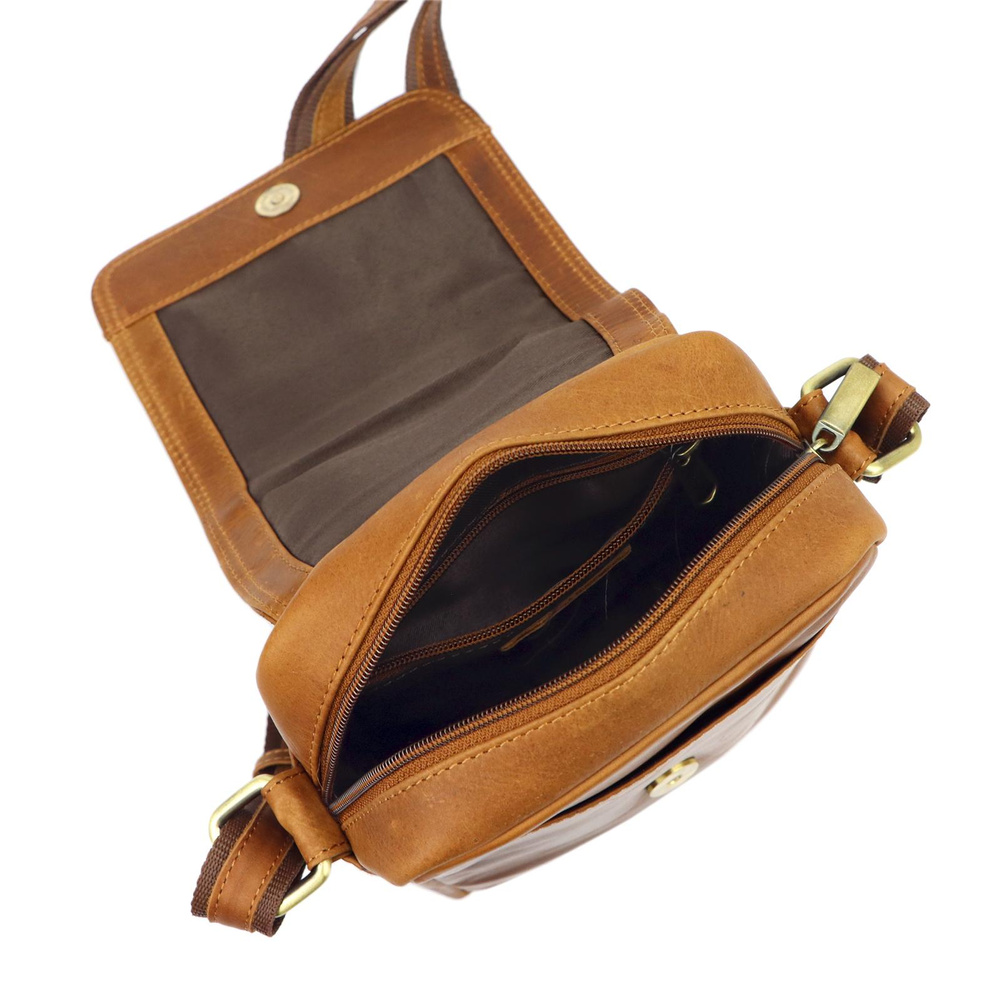 Klasyczna saszetka męska z najwyższej jakości, włoskiej, naturalnej skóry licowej. Skóra wyprawiana i barwiona wyłącznie naturalnymi garbnikami i barwnikami pochodzenia roślinnego i mineralnego. Barwienie skóry wykonywane jest ręcznie w procesie zwanym "tamponato", co nadaje jej charakterystycznego efektu cieniowania. Ma ona konstrukcję jednokomorową. Komora wykończona jest trwałą podszewką i zawiera kieszeń zamykaną na suwak. Komora jest zapinana solidnym zamkiem błyskawicznym i klapą z zatrzaskiem magnetycznym. Dodatkowa kieszeń znajduje się na tylnej ściance saszetki. Bardzo długi pasek pozwala wygodnie nosić ją na ukos przez pierś.