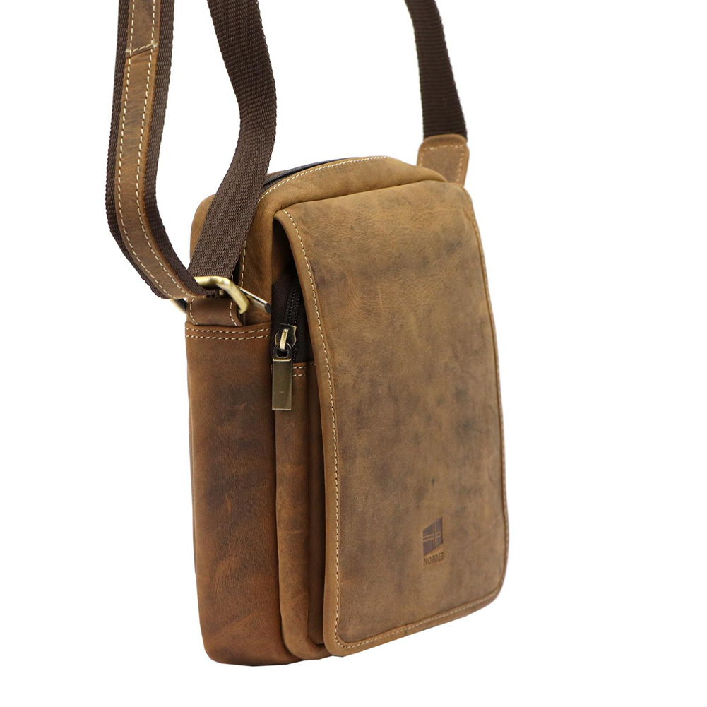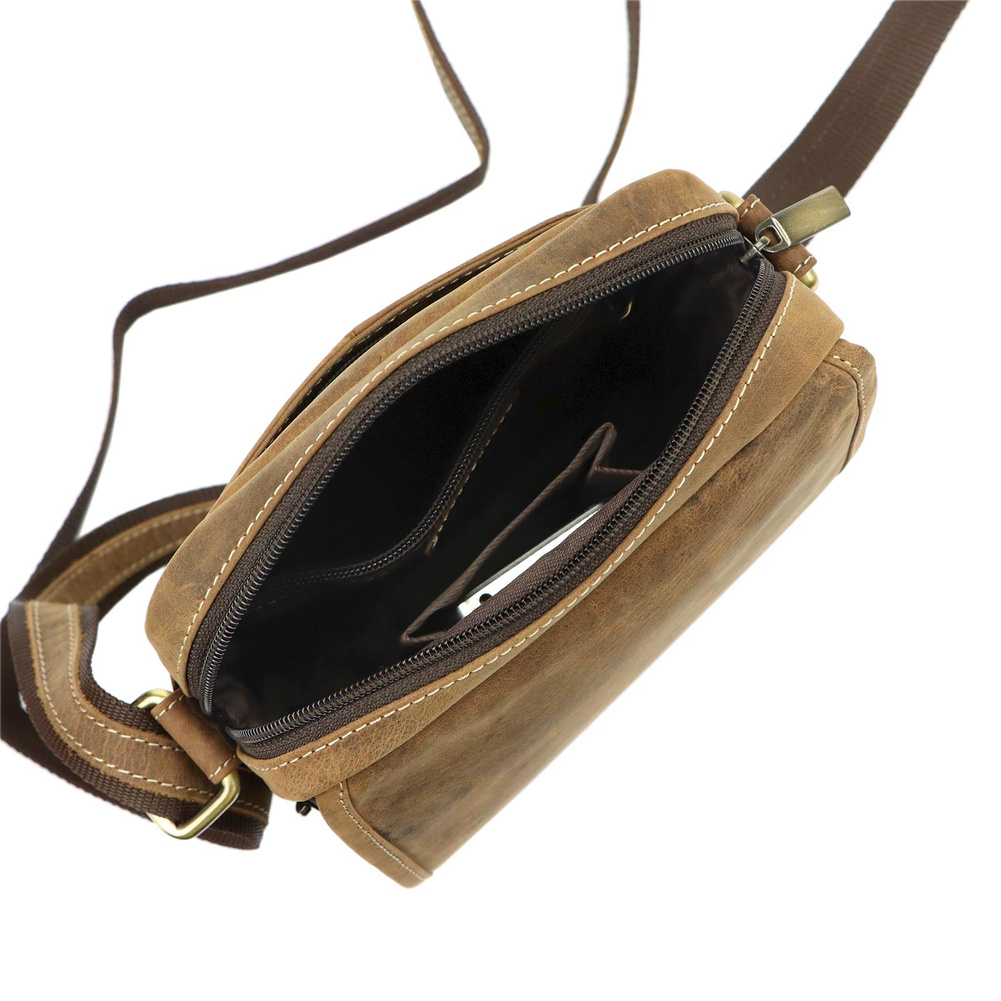Klasyczna saszetka męska z naturalnej skóry nubuk. Ma ona konstrukcję dwukomorową. Komora przednia zawiera kieszonkę na telefon, a komora główna kieszeń zamykaną na suwak. Obie komory są zapinana solidnymi zamkami błyskawicznymi. Dodatkowa kieszeń znajduje się na tylnej ściance saszetki. Bardzo długi pasek pozwala wygodnie nosić ją na ukos przez pierś.