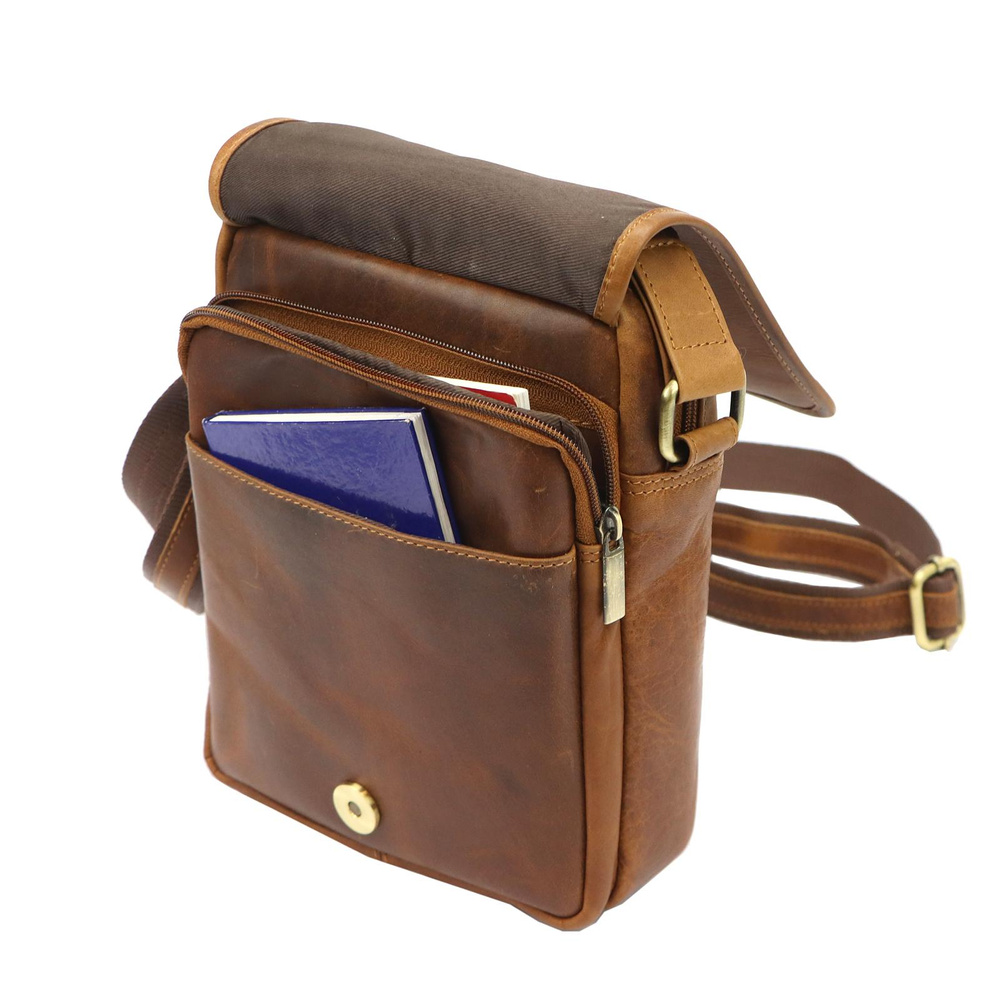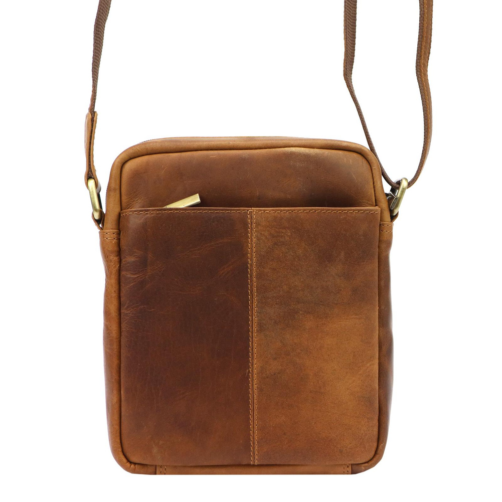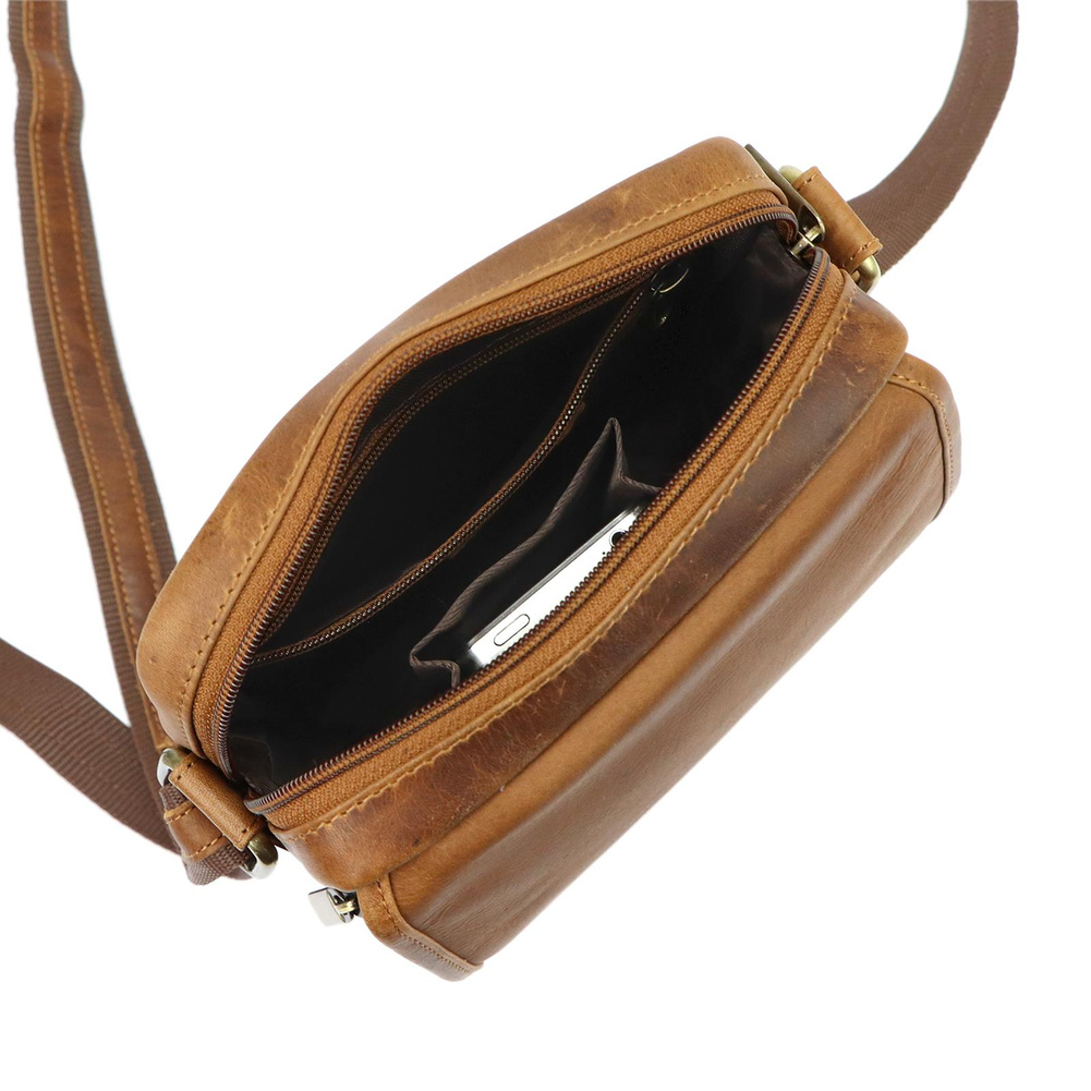 Klasyczna saszetka męska z najwyższej jakości, włoskiej, naturalnej skóry licowej. Skóra wyprawiana i barwiona wyłącznie naturalnymi garbnikami i barwnikami pochodzenia roślinnego i mineralnego. Barwienie skóry wykonywane jest ręcznie w procesie zwanym "tamponato", co nadaje jej charakterystycznego efektu cieniowania. Ma ona konstrukcję dwukomorową. Komora przednia zawiera kieszonkę na telefon, a komora główna kieszeń zamykaną na suwak. Obie komory są zapinana solidnymi zamkami błyskawicznymi. Dodatkowa kieszeń znajduje się na tylnej ściance saszetki. Bardzo długi pasek pozwala wygodnie nosić ją na ukos przez pierś.