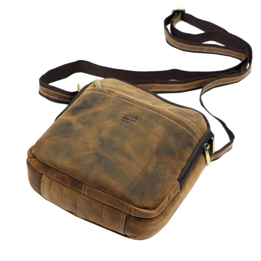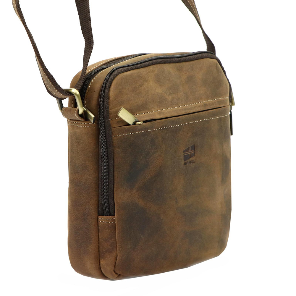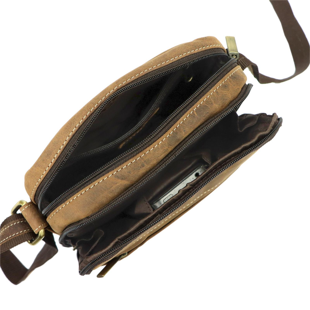 Klasyczna saszetka męska z naturalnej skóry nubuk. Ma ona konstrukcję dwukomorową. Komora przednia zawiera kieszonkę na telefon, a komora główna kieszeń zamykaną na suwak. Obie komory są zapinana solidnymi zamkami błyskawicznymi. Dodatkowe dwie kieszenie znajdują się na przedniej i tylnej ściance saszetki. Bardzo długi pasek pozwala wygodnie nosić ją na ukos przez pierś.