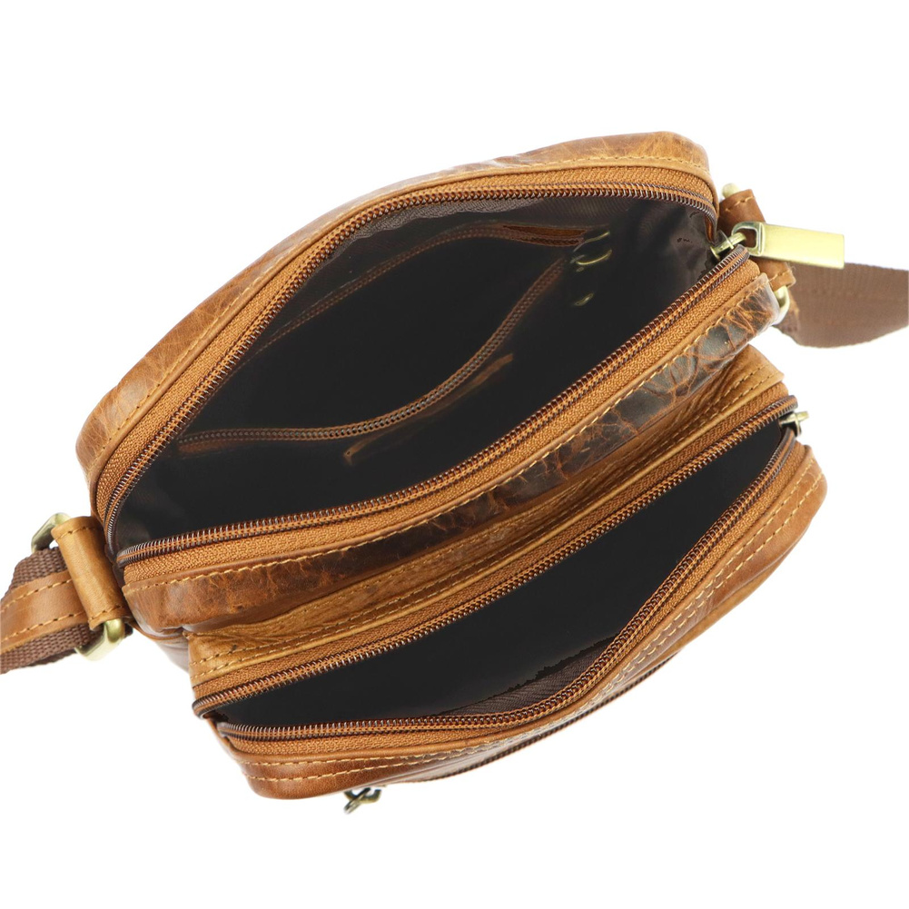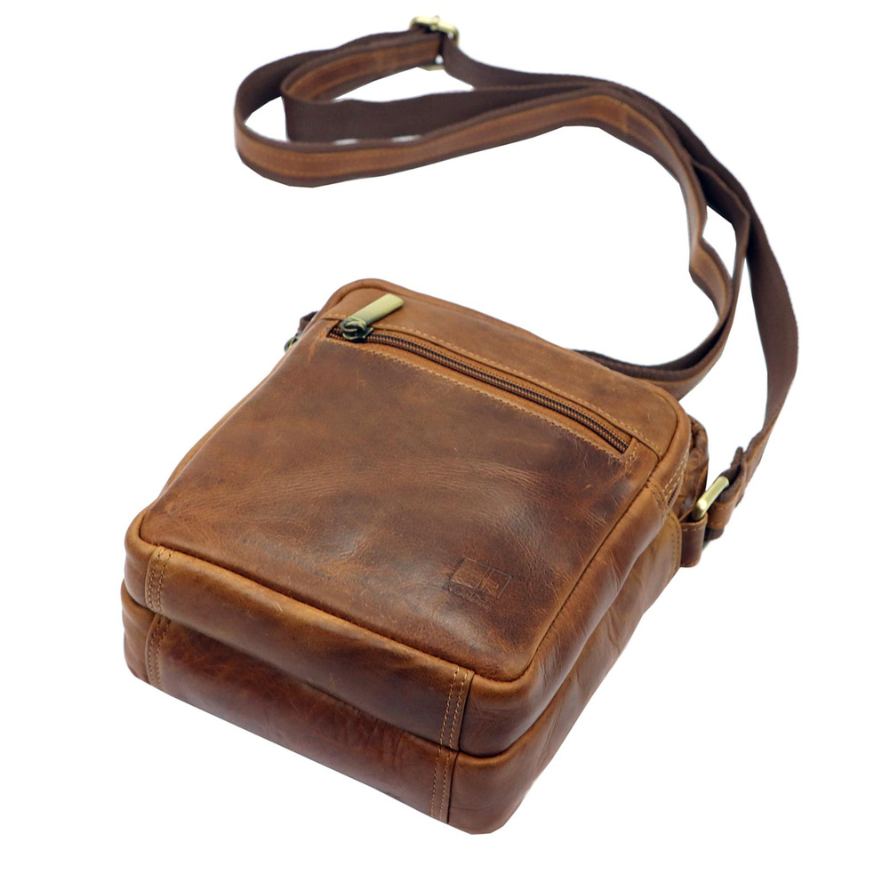 Klasyczna saszetka męska z najwyższej jakości, włoskiej, naturalnej skóry licowej. Skóra wyprawiana i barwiona wyłącznie naturalnymi garbnikami i barwnikami pochodzenia roślinnego i mineralnego. Barwienie skóry wykonywane jest ręcznie w procesie zwanym "tamponato", co nadaje jej charakterystycznego efektu cieniowania. Ma ona konstrukcję dwukomorową. Komora przednia zawiera kieszonkę na telefon, a komora główna kieszeń zamykaną na suwak. Obie komory są zapinana solidnymi zamkami błyskawicznymi. Dodatkowe dwie kieszenie znajdują się na przedniej i tylnej ściance saszetki. Bardzo długi pasek pozwala wygodnie nosić ją na ukos przez pierś.