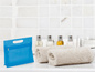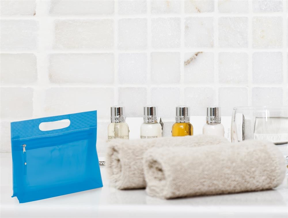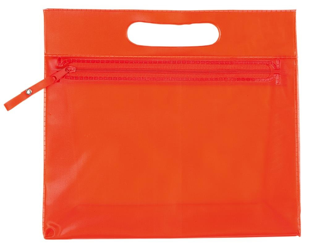 Kosmetyczka z główną przegrodą na zamek błyskawiczny i wyciętym uchwytem.